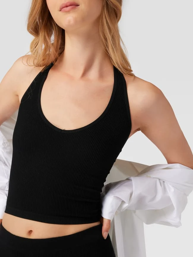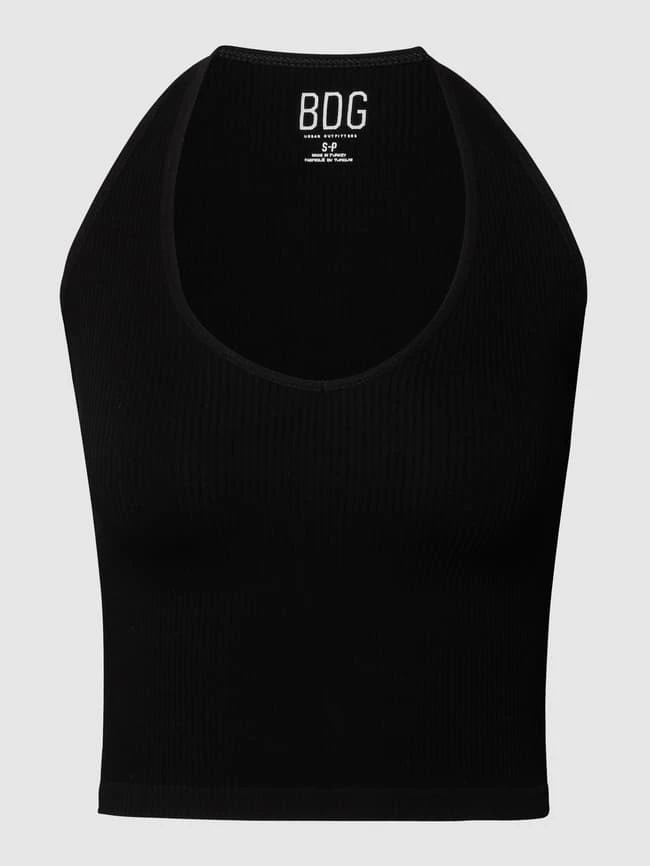 Das Crop Top von BDG ist aus einem strapazierfähigen Material gefertigt und körpernah geschnitten. Es zeigt sich in verkürzter Passform und Ripp-Optik mit Neckholder und U-Ausschnitt.