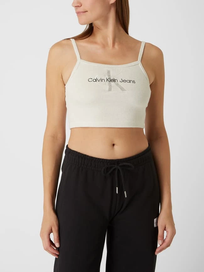 Das Crop Top von Calvin Klein Jeans ist aus einer Baumwollmischung mit Modal-Anteil gefertigt. Es ist verkürzt geschnitten und zeigt sich mit schmalen Trägern und Logo.