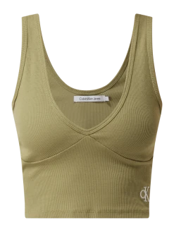 Das Crop Top von Calvin Klein Jeans ist aus einer Materialmischung mit Baumwoll- und Stretch-Anteil gefertigt. Es zeigt sich in verkürzter Passform mit feiner Struktur, Logo-Print und tiefem Rückenausschnitt.