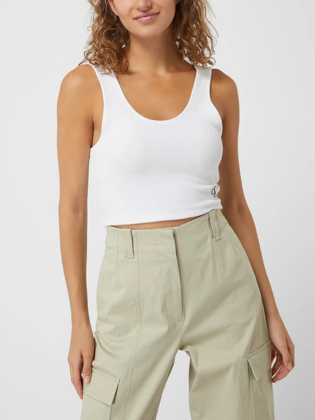 Calvin Klein Jeans Crop Top Mit Feiner Struktur – Weiß