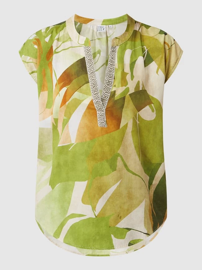 Das Blusenshirt von Emily Van den Bergh ist aus reiner Baumwolle gefertigt und locker geschnitten. Es kommt mit Allover-Muster, Tunikakragen und angeschnittenen Ärmeln.