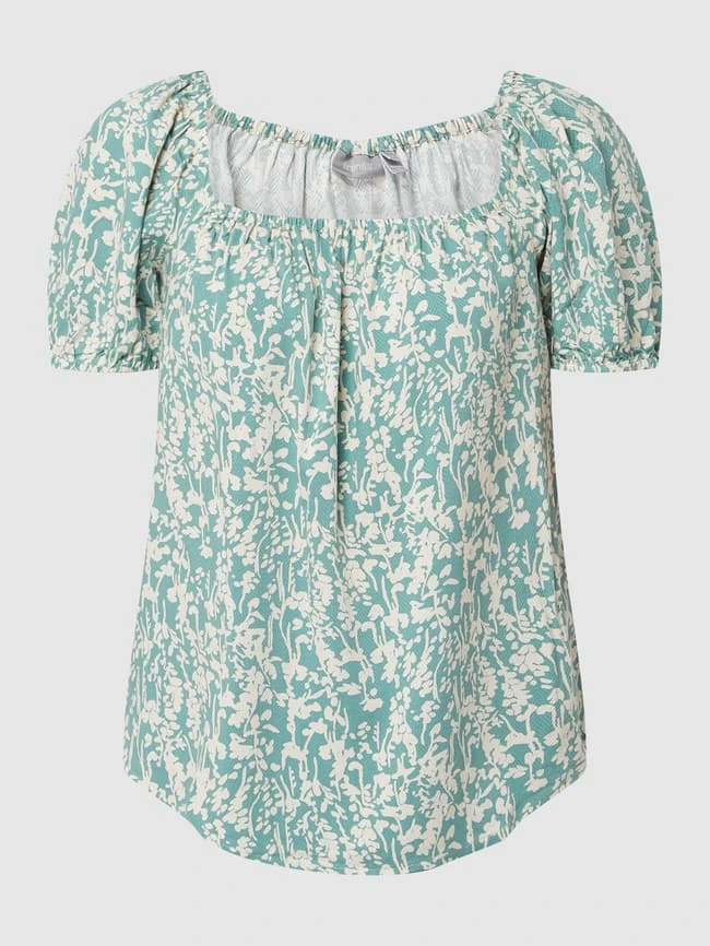 Das Blusenshirt von Fransa ist aus reiner Viskose gefertigt. Es zeigt sich in taillierter Passform mit Carmen-Ausschnitt und kann schulterfrei getragen werden.