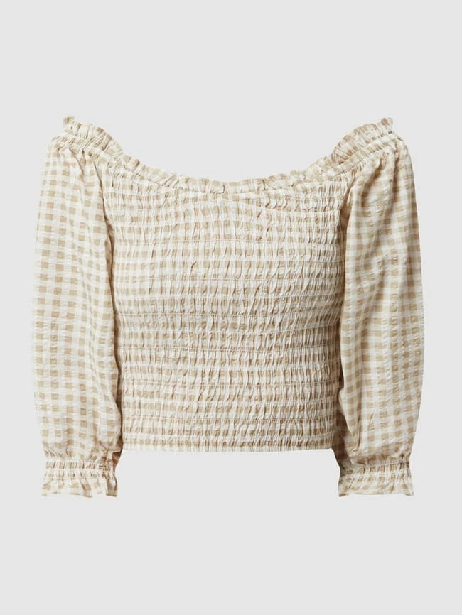 Gina Tricot Cropped Off-Shoulder-Blusenshirt Aus Seersucker Modell ‘Evren’ – Sand