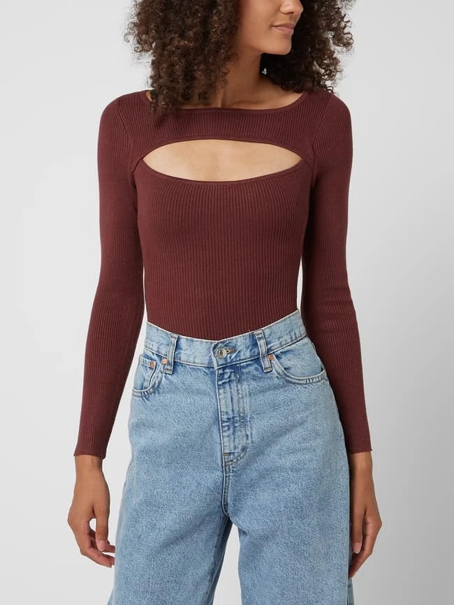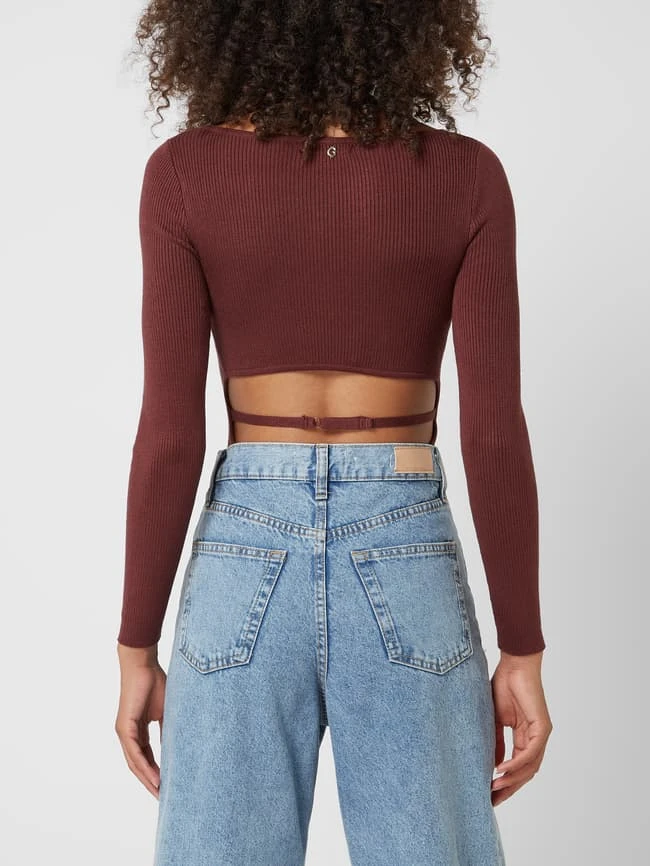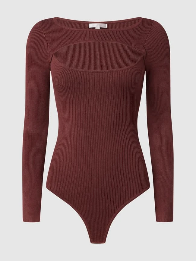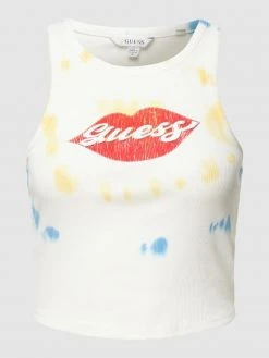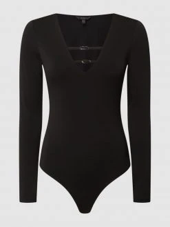 Der Body von GUESS ist aus einer Viskosemischung gefertigt. Er kommt in eng anliegender Passform mit Rippenstruktur, Cut Outs und kleinem Logo.