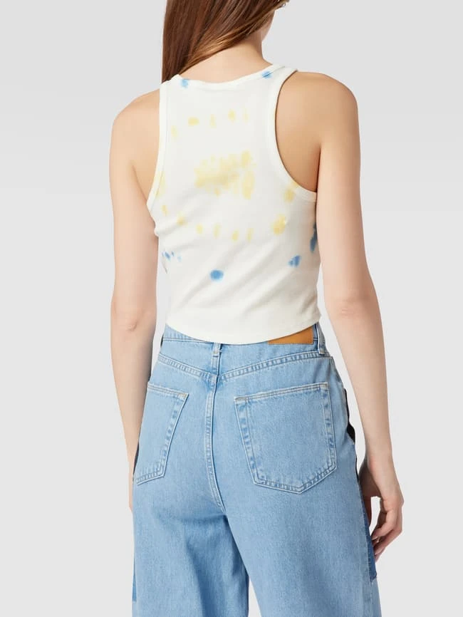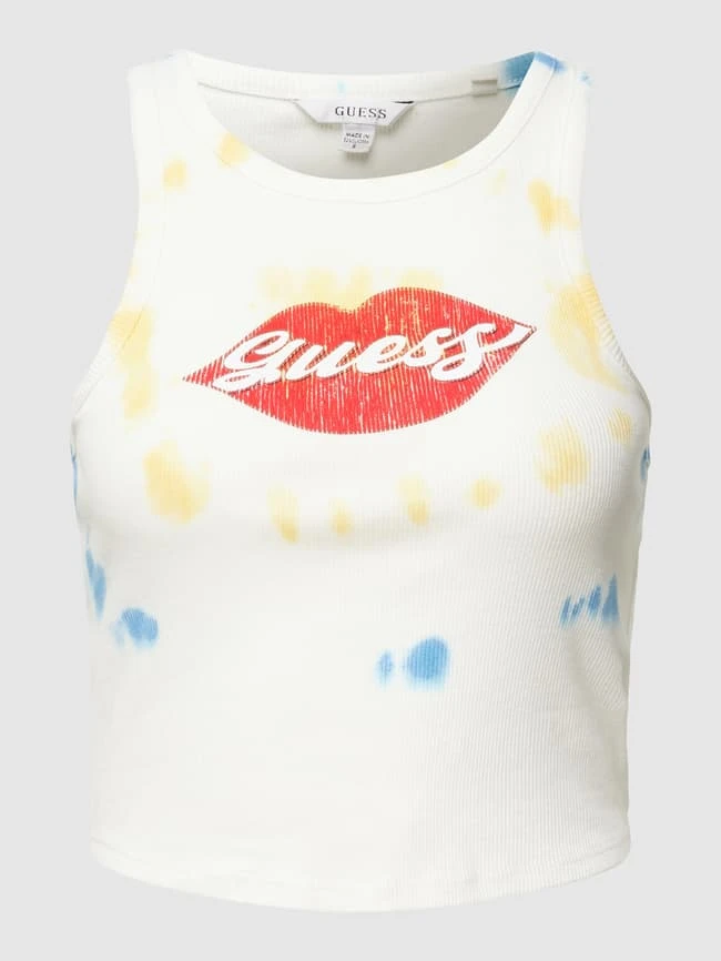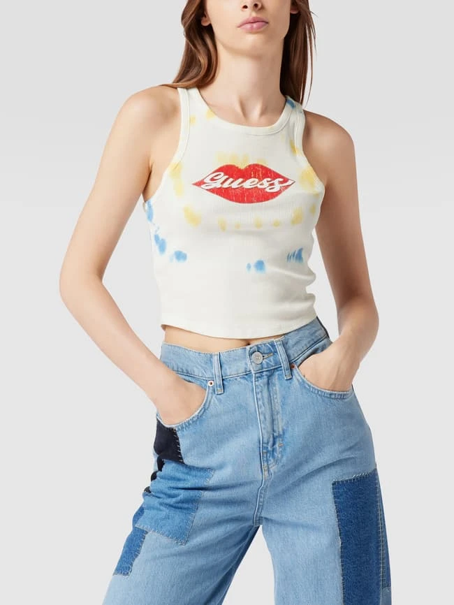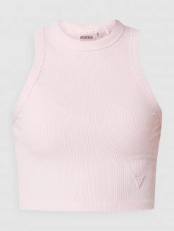 Das Crop Top von GUESS ist aus reiner Baumwolle gefertigt und körpernah geschnitten. Es zeigt sich mit Label-Print, breiten Trägern und geripptem Rundhalsausschnitt.