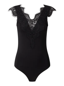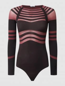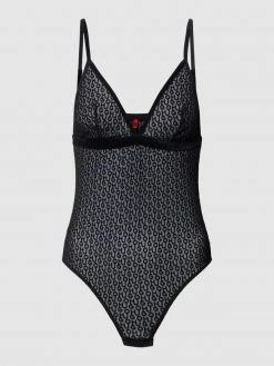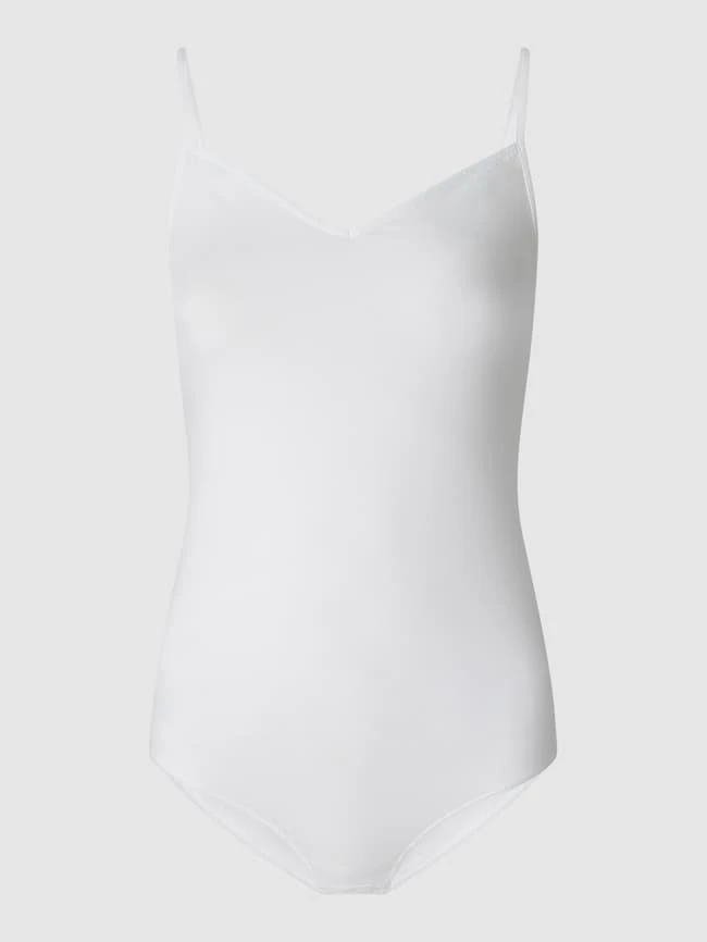 Der Body von HANRO ist aus einem Baumwoll-Elasthan-Mix gefertigt und eng anliegend geschnitten. Er kommt mit Herz-Ausschnitt, verstellbaren Spaghettiträgern und Druckknöpfen am Slip.
