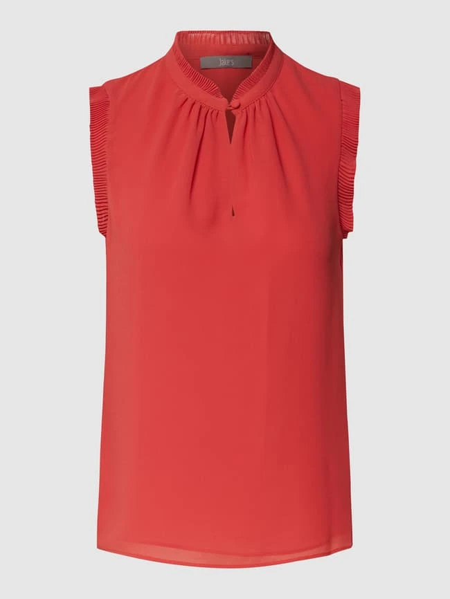 Das Blusentop von Jake*s Collection ist aus strapazierfähigem Material gefertigt und locker geschnitten. Es kommt im unifarbenen Design mit Plisseefalten, Schlüsselloch-Ausschnitt und Stehkragen.