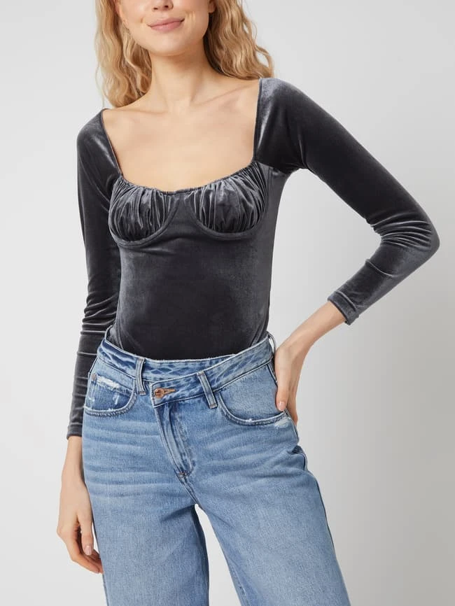Mango Body Aus Samt Modell ‘Carol’ – Mittelgrau