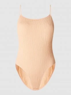 Der Body von MANGO ist aus Samt gefertigt. Es kommt in eng anliegender Passform mit Karree-Ausschnitt und 7/8-Arm.