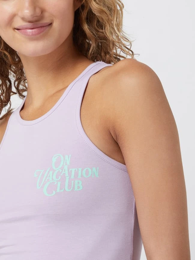 Das Top von On Vacation ist aus Bio-Baumwolle und Stretch gefertigt. Es zeigt sich in kurzer Passform mit Rundhalsausschnitt und Logo.