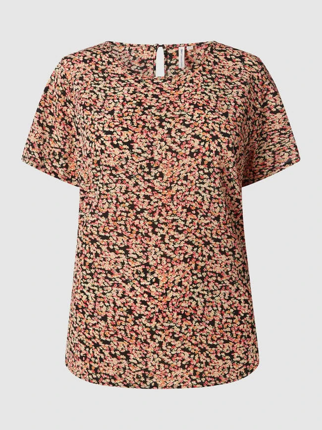 Das Blusenshirt von ONLY CARMAKOMA ist aus einer Materialmischung mit Stretch-Anteil gefertigt. Es ist locker geschnitten und zeigt sich mit floralem Muster und Schlüsselloch-Ausschnitt auf der Rückseite.