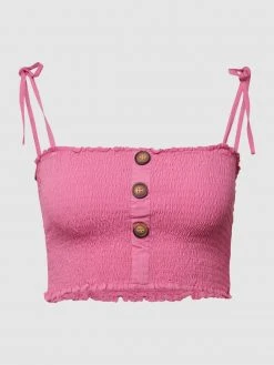 Das Crop Shirt von ONLY ist aus einem Baumwoll-Elasthan-Mix gefertigt. Es zeigt sich mit floralem Muster, V-Ausschnitt und Muschelsaum.