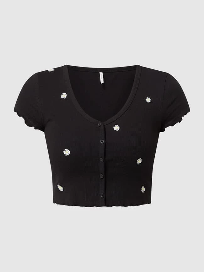 Only Crop Shirt Mit Floralem Muster Modell ‘Daisy’ – Schwarz