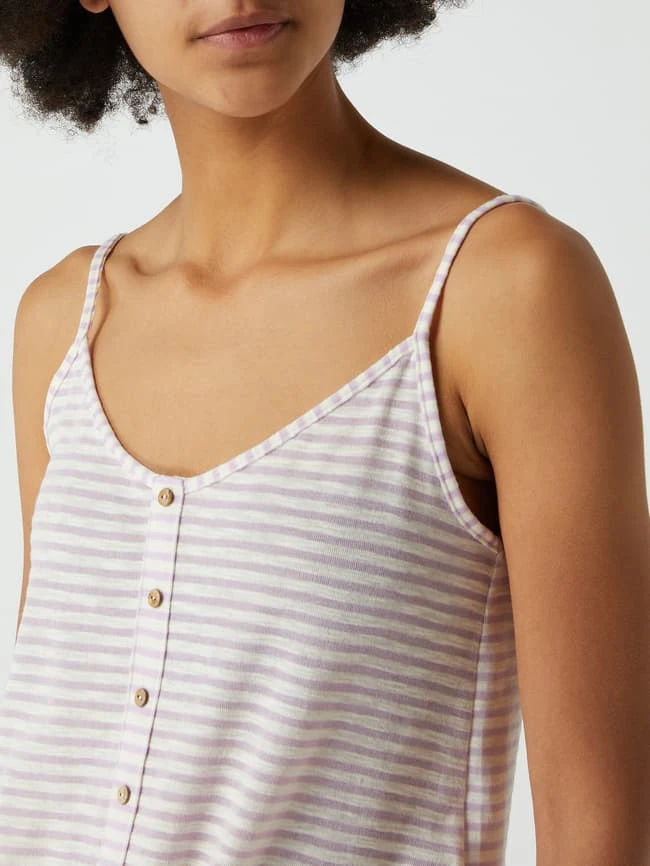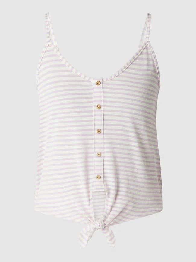 Das Top von ONLY ist aus einer Baumwollmischung gefertigt und tailliert geschnitten. Es zeigt sich mit Streifenmuster, Zierknopfleiste und Knotendetail am Saum.