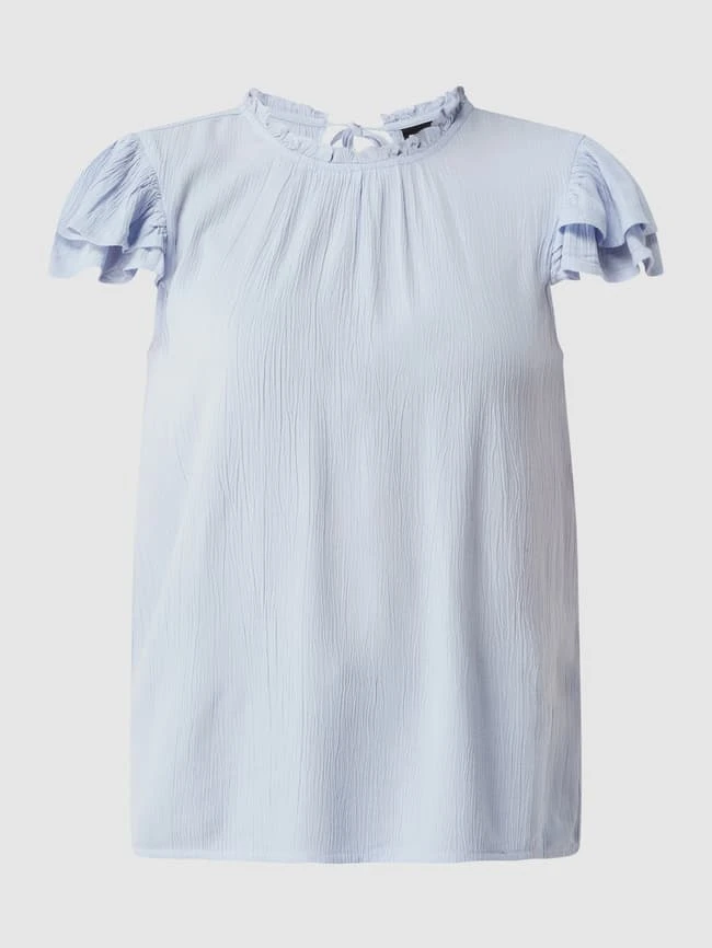 Das Blusenshirt von PIECES ist aus reiner Viskose gefertigt und locker geschnitten. Es zeigt sich mit Crinkle-Effekt, Rüschen und Volantärmeln im Stufen-Look.