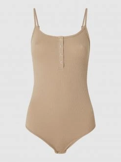 Der Body von PIECES ist aus einem Material-Mix mit Stretch-Anteil gefertigt und eng anliegend geschnitten. Er zeigt sich mit Effektgarn, Cut Out und Knopfverschluss.