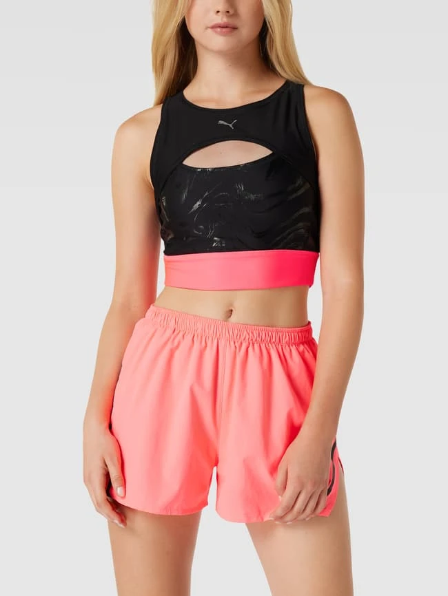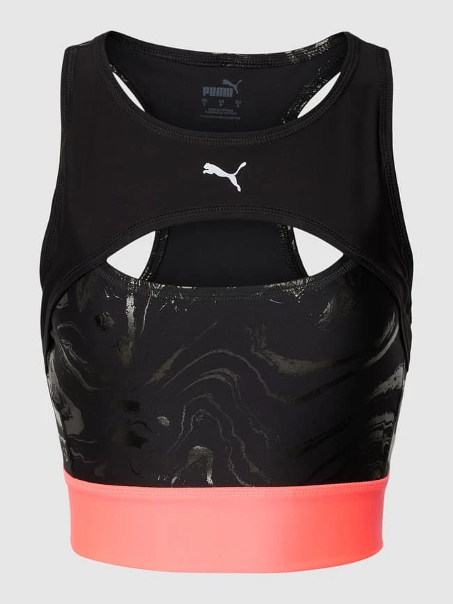Das Crop Top von PUMA ist aus einem Material-Mix mit Stretch-Anteil gefertigt und eng anliegend geschnitten. Es zeigt sich mit Cut Out und Racerback sowie breiten Trägern.