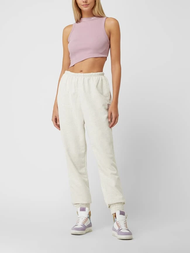 Das Crop Top von Reebok Active ist aus einem Baumwoll-Elasthan-Mix gefertigt. Es zeigt sich in verkürzter Passform mit Rippenstruktur, Logo-Stickerei und asymmetrischem Saum.