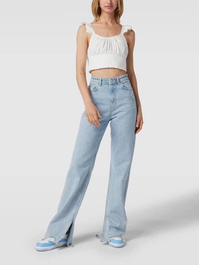 Das Crop Top von REVIEW ist aus reiner Baumwolle gefertigt und eng anliegend geschnitten. Es zeigt sich mit Details aus Häkelspitze und Rundhalsausschnitt sowie breitem Bund in Smok-Optik.