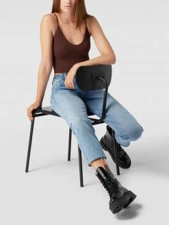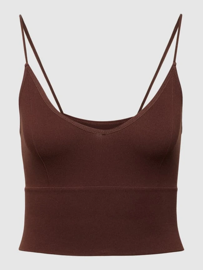 Das Crop Top von REVIEW ist aus strapazierfähigem Material gefertigt und eng anliegend geschnitten. Es zeigt sich in unifarbenem Design mit schmalen Trägern, Ripp-Optik und V-Ausschnitt.