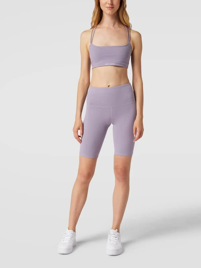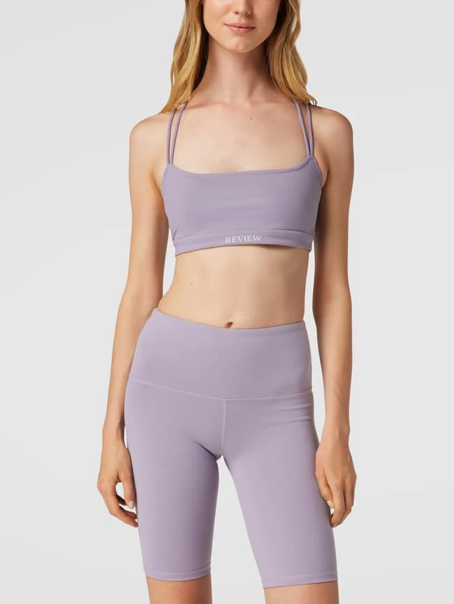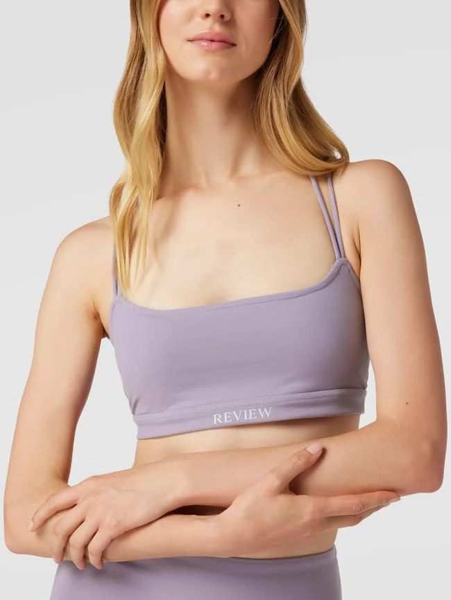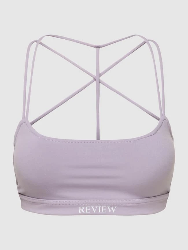 Das Crop Top von REVIEW ist aus einem strapazierfähigen Material mit Stretch-Anteil gefertigt und körpernah geschnitten. Es zeigt sich in verkürzter Passform im unifarbenen Design, mit Karree-Ausschnitt, Label-Print, gekreuztem Rücken und wattierten Cups.