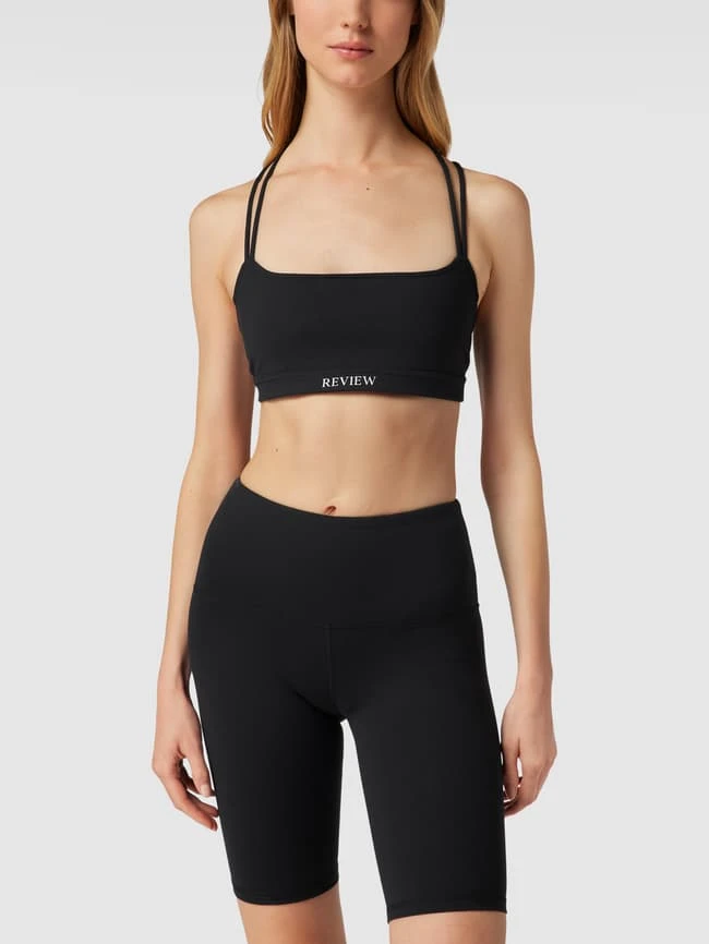 Das Crop Top von REVIEW ist aus einem strapazierfähigen Material mit Stretch-Anteil gefertigt und körpernah geschnitten. Es zeigt sich in verkürzter Passform im unifarbenen Design, mit Karree-Ausschnitt, Label-Print, gekreuztem Rücken und wattierten Cups.