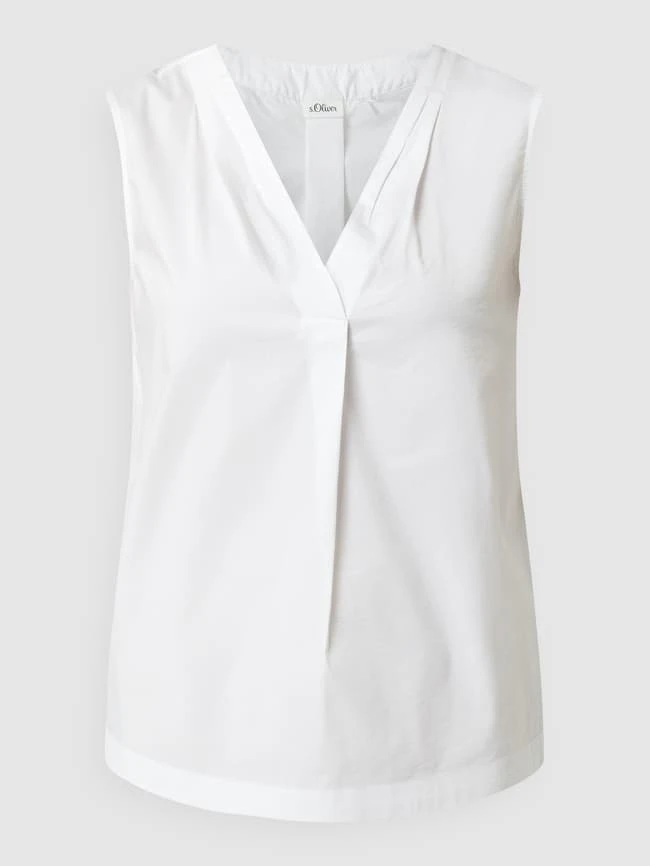 Das Blusentop von s.Oliver BLACK LABEL ist aus einer Baumwollmischung mit Stretch-Anteil gefertigt. Es kommt in gerader Passform mit V-Ausschnitt und Kellerfalte auf der Rückseite.