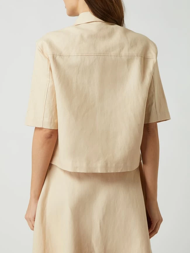 Die Bluse von Seidensticker ist aus einem Leinen-Baumwoll-Mix gefertigt. Sie kommt im Boxy Fit mit Umlegekragen, kurzen Ärmeln und aufgesetzten Taschen.