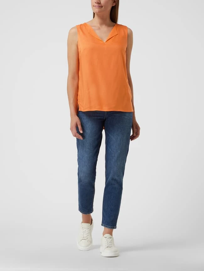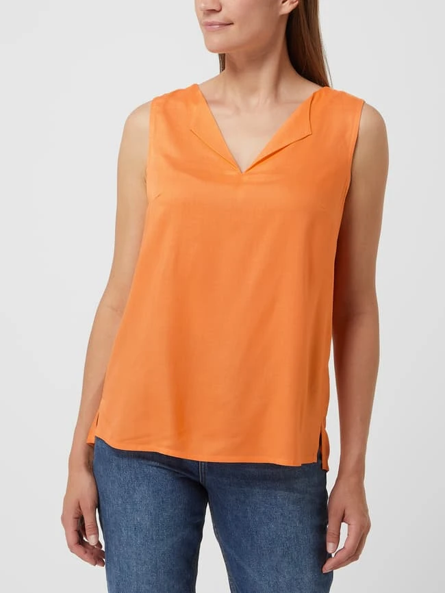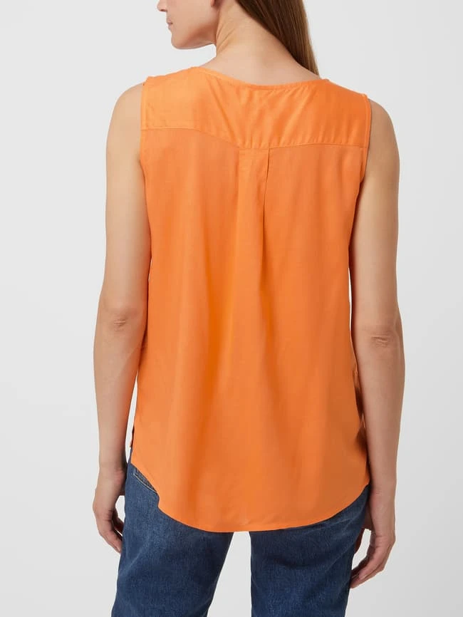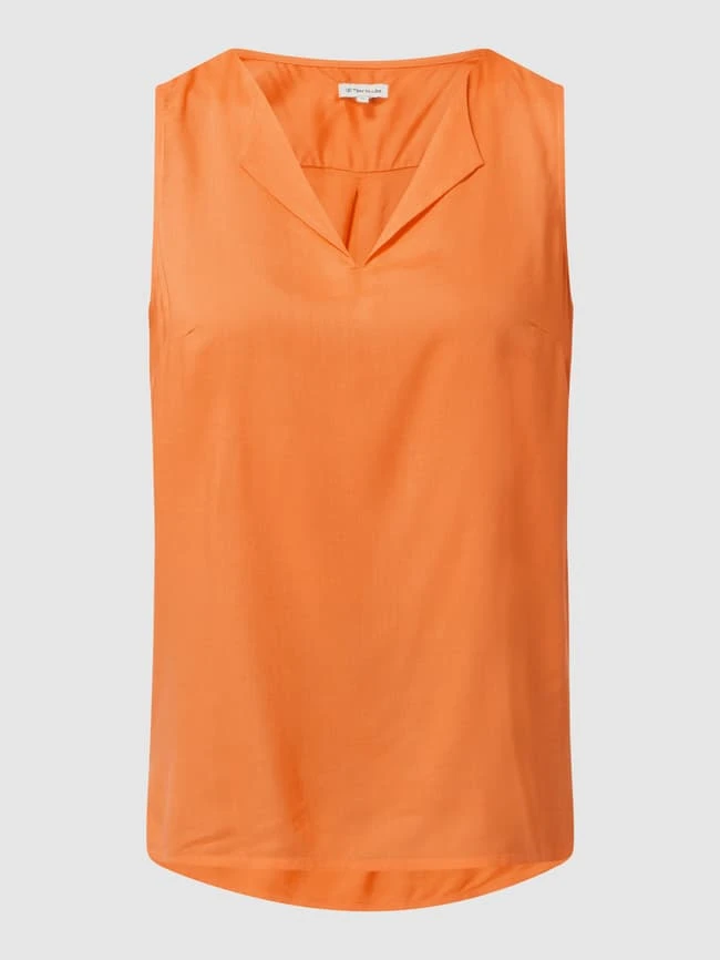Das Blusentop von TOM TAILOR ist aus reiner Viskose gefertigt und locker geschnitten. Es zeigt sich mit Spatenkragen und kurzen Seitenschlitzen.