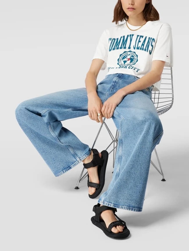 Das T-Shirt von Tommy Jeans ist aus reiner Baumwolle gefertigt und locker geschnitten. Es kommt im Cropped-Look und im unifarbenen Design mit geripptem Rundhalsausschnitt und Label-Print.