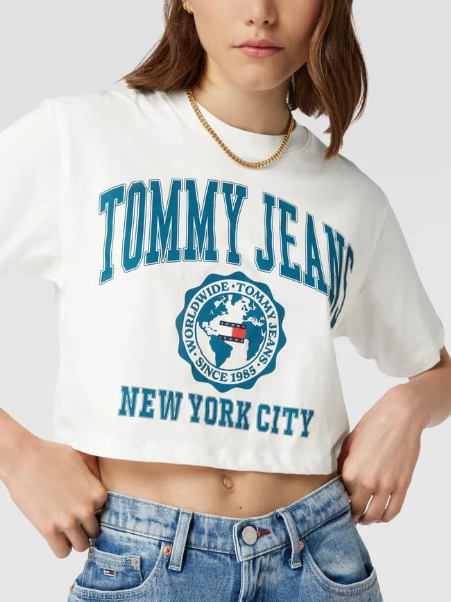 Tommy Jeans Cropped T-Shirt Mit Label-Print Modell ‘SUPER CROP COLLEGE’ – Weiß